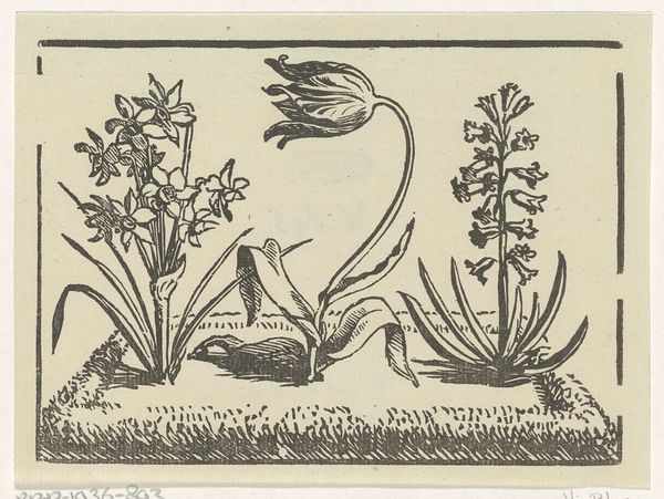 Curator: Here we have Janus de Winter’s “Orchideeën,” created sometime between 1892 and 1951. It's an etching, a printmaking technique involving acid to create lines in a metal plate. Editor: What strikes me immediately is its slightly gothic sensibility, a certain dark romanticism. The strong contrast between black and white gives it a dramatic weight, even though the composition itself is quite simple. Curator: Indeed. Note how de Winter utilizes the etching process. Look closely at the lines making up the forms of the orchids. The density and varying depths etched into the plate create subtle gradations in tone and texture, even with a single color of ink. This contributes greatly to the feeling of depth and dimensionality. Editor: It makes you wonder about the labor. All of those delicate lines meticulously etched into the metal… What tools did de Winter employ, and how many proofs did it take to achieve this effect? It reminds me of 19th century botanical illustration, but infused with a uniquely modernist anxiety and tension. Curator: Precisely. It adheres in some ways to the tradition of flower painting, where careful observation is expected. Here the representation, although grounded in observable qualities, verges on the surreal through a distorted and abstracted reality. It pushes into Symbolism. Consider also, the texture in these orchids—like tiny barbs almost. What is the artist trying to say through these sharp textures? Editor: Well, maybe that's where a consideration of process illuminates its intent. Was de Winter frustrated by the medium, wrestling with the limitations of the etching needle to convey subtle details, translating into these bristled features? Or was there a socio-political undercurrent? Symbolism as resistance to industrialization? Curator: Intriguing questions. Ultimately, this etching stands as a fascinating study in contrasts. Black and white, natural and unnatural, romantic and, to your point, perhaps resisting through form. Editor: A beautiful testament to the power of materiality and making. De Winter offers not just orchids, but a dialogue of intent through the medium itself.