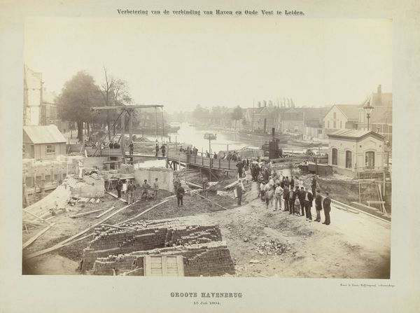 This photograph, taken by Julius Perger, shows the construction of the Feijenoord harbor in Rotterdam. The eye is immediately drawn to the textured surfaces of the stone walls and wooden frameworks, which dominate the foreground. The grayscale palette lends a documentary feel, emphasizing the raw materiality of the industrial landscape. The composition is structured by strong horizontal lines and converging diagonals, creating a sense of depth that pulls the viewer into the scene. The lines of the railway tracks mirror the receding perspective, leading toward the ship and smokestacks in the distance. This directs us to consider the relationship between the foreground's construction site and the larger network of global trade and industrial activity. The photograph invites us to consider how space is organized and experienced in an era of rapid industrialization. By drawing attention to the formal elements—the lines, textures, and compositional arrangement—Perger’s photograph prompts us to reflect on how the spaces of modernity are constructed and perceived.