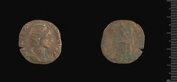Editor: Here we have an Antoninianus of Gallienus. Looking at it, the wear and patina give it an almost ghostly feel. What kind of stories do you think these images were meant to tell? Curator: The Antoninianus, beyond its monetary value, served as a powerful propaganda tool. The imagery of deities, like the stag, wasn't arbitrary. It carried potent symbolic weight, often associated with Diana, goddess of the hunt and moon, suggesting imperial favor and divine protection. What emotional connection do you think the Roman populace had to such imagery? Editor: I imagine it was a way to connect with and perhaps even deify their ruler. Curator: Precisely. These symbols acted as cultural touchstones, reinforcing shared beliefs and imperial authority. This coin is a lens through which we can examine the psychological landscape of the Roman Empire. Editor: So much meaning packed into such a small object! Curator: Indeed. Each image element provides rich information on the cultural memory of the Roman empire.