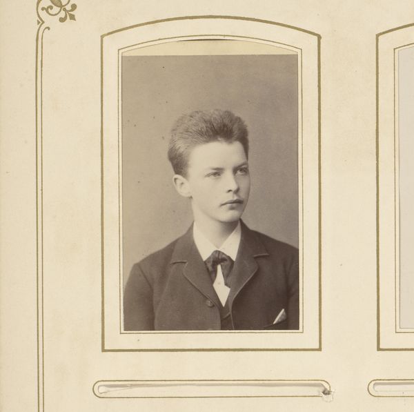 Here we see Emil Geist's portrait of a young man, Hinne Bernhard, captured in a small photograph of muted tones. The oval frame softens the image, drawing our focus to the sitter's delicate features. The composition, simple and direct, echoes the formal portraiture of the era, yet it also invites a deeper reading. The subdued palette—ranging from creamy whites to gentle browns—creates a sense of timelessness, but also perhaps hints at the constraints of societal expectations. Consider the gaze of the subject. Is there a sense of conformity? Or does it hint at an interiority, a resistance to being fully captured by the camera's lens? The photograph, in its very structure, presents a dialogue between visibility and concealment, challenging us to look beyond the surface. The play of light and shadow across the face suggests a complex interplay between public persona and private self, a negotiation that remains relevant even today.