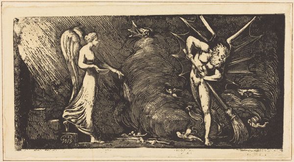 Otto Scholderer made this drawing of Diana and Actaeon at an unknown date using graphite on paper. The artist used graphite, a relatively inexpensive material that makes a mark very easily, to create this piece. The application of the graphite appears spontaneous, with areas of dense hatching to build form and depth in the landscape, and create contrasts of light and shadow. Although this looks like a quick sketch, the artist has used the qualities of the material itself to evoke texture and movement within the scene. The choice of graphite allows for both expressive freedom and precision in capturing the drama of the mythological narrative. Ultimately, the material and processes used by Scholderer imbue the artwork with a sense of immediacy, drawing viewers into the heart of the narrative. This underscores the importance of considering materials, making, and context in understanding the full meaning of an artwork.