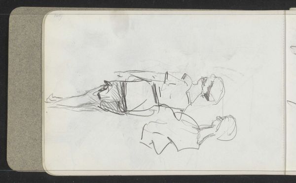 Editor: This is George Hendrik Breitner’s "Vrouw met kind," or "Woman with Child," created sometime between 1886 and 1903. It’s a pencil sketch on paper, housed at the Rijksmuseum. It feels very intimate and immediate, almost like a glimpse into a private moment. What do you see in this piece, particularly considering it’s just a sketch? Curator: Precisely. This initial impression is vital because even in its sketched, incomplete state, the work is still charged with symbolism. Notice how the mother figure almost towers over the child, forming a protective arch. Do you find that evokes a certain archetypal maternal protection? Editor: I hadn't thought of it that way, but now that you mention it, I see it. It's like she’s shielding the child. The rough lines almost add to that feeling, as if it were an instinctive gesture captured on paper. Curator: Yes. Breitner, immersed in the burgeoning modernism of the late 19th century, tapped into primal human emotions here. Motherhood is such a recurring symbol throughout art history, from religious icons to everyday scenes, representing continuity and care. In this simple sketch, the figures lean against each other, creating their shared safe world. Don’t you think that the sketch emphasizes their intimacy even more than a finished work might? Editor: That's a really interesting point. Because it’s a sketch, there’s a rawness and honesty to it, which maybe a more polished piece would lose. It makes me think about all the quick, personal moments that never make it into finished artworks, but are full of feeling nonetheless. Curator: Indeed! Sketches can capture the emotional immediacy that sometimes gets lost in detailed rendering. It reveals the enduring power of simple, yet profoundly human symbols and the importance of studying not only finished pieces, but these quick sketches, too, as these provide key cultural context. Editor: It is a privilege to study Breitner's initial insights in capturing motherhood, and how quick art helps to amplify the meaning and emotional connection. Thank you for offering that different insight!