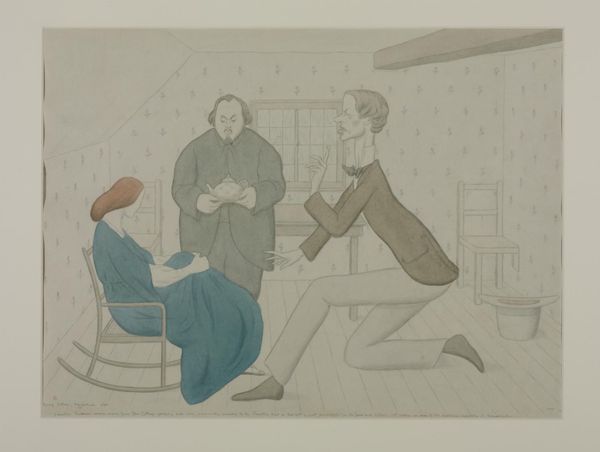 Maurice Denis's "Les pèlerins d’Emmaüs" is composed of simplified forms and subdued colors, creating a contemplative and spiritual atmosphere. The interior scene is rendered with flat planes and minimal detail, typical of the artist's post-Symbolist style. The composition is structured around a central table, around which figures gather, bathed in soft, diffused light, evoking a sense of quiet reverence. Denis employs color to create harmony and unity, with muted tones of brown, yellow, and gray dominating the palette. These colors reinforce the painting's solemn mood. The figures are elongated and stylized, contributing to the overall sense of timelessness. Denis, influenced by the Nabis, sought to infuse everyday scenes with spiritual significance. By reducing forms to their essential qualities, Denis invites viewers to engage with the painting on a deeper, more intuitive level. The artwork functions as an intersection between the earthly and the divine, capturing a moment of profound spiritual insight.