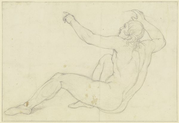 This ink drawing shows a nude man reclining, and the echoes of classical antiquity resonate deeply within it. Consider the figure’s pose – a direct descendant of ancient Greek and Roman sculptures of gods and heroes, embodying ideals of beauty and strength. Now, observe the arm raised, grasping what appears to be a measuring instrument. This gesture, seemingly simple, harkens back to the Vitruvian Man, an emblem of human perfection and divine order, as well as to the Greek Doryphoros by Polykleitos. The symbol of the raised hand, seen across cultures from ancient Egypt to the Renaissance, speaks of power, authority, and even divine intervention. Think of Moses raising his staff, or a Roman emperor addressing his troops. Such symbols create a powerful, subconscious link between the viewer and centuries of cultural memory. It’s a visual language that transcends time, continuously reinvented by the long shadow of the collective subconscious.