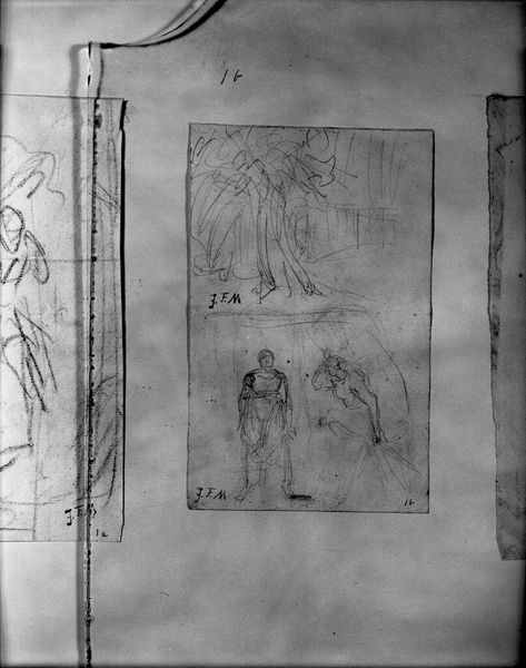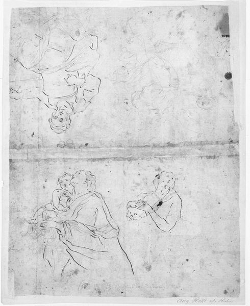 This anonymous sketch depicts a group of four men amidst architectural elements, possibly illustrating a miracle performed by a monk. In a time when religious institutions wielded considerable power, representations of faith and miracles often served to reinforce social hierarchies. The monk, central to the scene, becomes a figure through which the power of the church is mediated. Consider how the architectural setting, perhaps a church or monastery, reinforces the dominance and authority of religious spaces in people's lives. The ambiguity of the scene invites us to question traditional portrayals of miracles. Does the sketch reinforce or challenge the Church's dominance? The anonymous nature of the artist encourages us to reflect on the narratives that have been historically marginalized. How does the absence of a known creator influence our understanding of power dynamics within religious and artistic contexts? It compels us to consider the untold stories and unacknowledged perspectives of the past.