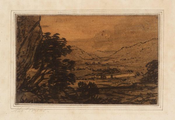 This landscape, called “Gezicht op Alle,” was etched by Martinus Antonius Kuytenbrouwer Jr. sometime in the mid-19th century. The image, framed within an oval, shows a town nestled amongst the mountains. But let’s consider how the artist created this view. Kuytenbrouwer used etching, a printmaking technique that involves biting lines into a metal plate with acid, which are then filled with ink and printed onto paper. The resulting image has a distinctive texture, with fine lines and subtle gradations of tone, and gives a sense of precision and control, but also of labor. Etching was an established technique at this time, and offered artists a way to reproduce their work, making it more accessible to a wider audience. In this context, Kuytenbrouwer's choice of medium reflects the changing social and economic landscape of the 19th century, with its increasing emphasis on mass production and consumption. By considering the materials and processes involved in its creation, we can appreciate the artwork not just as a picturesque scene, but as a product of its time.