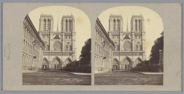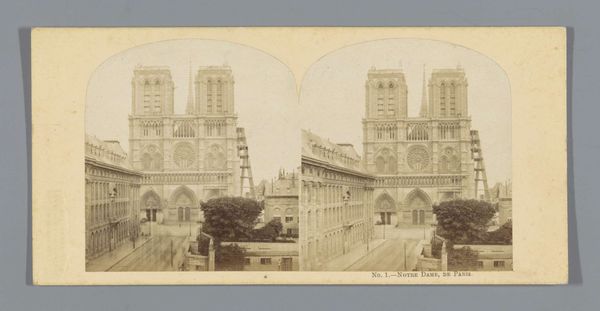 This stereoscopic photograph of the tower of the Cathedral of St. Michael and St. Gudula in Brussels was created by Jules Hippolyte Quéval in the mid-19th century. Quéval, a Belgian photographer, captured this architectural marvel during a time of significant social and political change. This image is a product of its time; consider the rise of photography as a means of documentation and the evolving notions of national identity in Belgium. The Cathedral, with its towering presence, symbolizes not only religious faith but also the aspirations and values of a burgeoning nation. Look at the way Quéval frames the shot, emphasizing the cathedral's grandeur against the backdrop of urban life. This juxtaposition invites us to consider the intersection of sacred spaces and secular society. How might the people of Brussels, then and now, see themselves in relation to this imposing structure? Quéval’s work offers a glimpse into a moment where the traditional and the modern converge, shaping the cultural landscape. It is an architectural marvel that reflects a society grappling with its identity and place in the world.