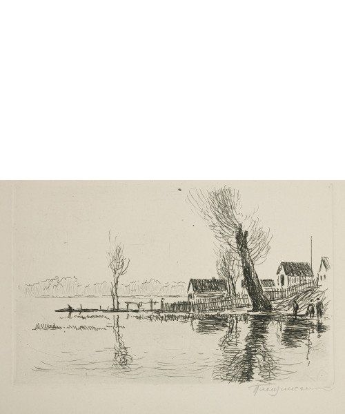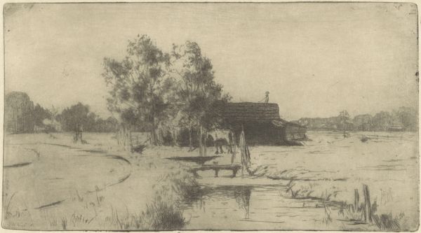Editor: This is Pieter van Loon’s “River Landscape,” drawn in 1864, using pencil. It's quite delicate, a study of light on water and structures. What’s fascinating to me is its almost photographic quality, despite being rendered entirely by hand. What stands out to you? Curator: Looking at "River Landscape" through a materialist lens, I am drawn to the process behind it. Consider the choice of pencil: its availability and affordability would have democratized art-making, removing it from the exclusive realm of oil painting for example. Van Loon, with this work, emphasizes the artistic merit achievable through readily accessible materials, decentering hierarchies typically seen in artistic mediums. Editor: So the drawing itself is making a statement? Curator: Precisely. It challenges our understanding of value and skill. Why depict everyday life and labor? What materials does this entail? Is this a drawing created *en plein air*, made by a traveling artist? Does he sell them or does he create them for personal viewing only? I see a distinct awareness here to blur boundaries between traditional art and utilitarian craft, potentially influenced by emerging social movements and questions about the function of art within Dutch society during this period. Editor: I didn't think about how the context influenced his choices of what and how to draw. Curator: By exploring this through the material used, the landscape's setting, we learn more than just its literal representation but, actually, discover subtle narratives regarding labour and class too! What does an industrializing Europe make you feel when considering an idyllic, romantic countryside view such as this? Editor: I guess looking closer at the process shows how revolutionary something seemingly traditional can be. Curator: Absolutely. Analyzing the art supplies opens doors to grasp Van Loon's cultural milieu and challenge us to confront values imbued in art history. This drawing encourages questions about production costs, art consumption as well.