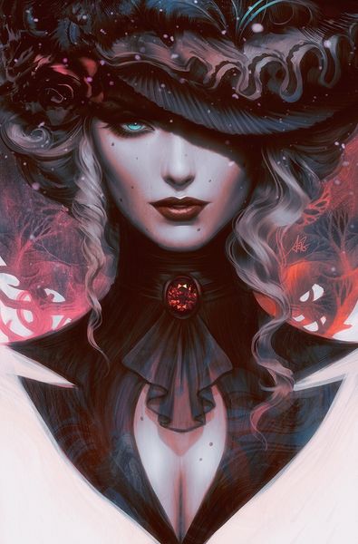 Stanley Artgerm Lau created this rendering of Vampirella with contemporary digital painting techniques sometime in the 21st century. Lau applies his graphic style to Vampirella with a painterly approach. His use of digital tools mimics the effects of traditional painting, resulting in an image with a hand-touched quality, despite its production via digital means. The deep blacks, blood reds, and spectral flesh tones create a striking image. Lau’s use of digital painting techniques reflects the changing landscape of contemporary art production, where digital tools offer new avenues for creative expression. This piece exists as a digital file, infinitely reproducible without loss of quality. This accessibility challenges traditional notions of value associated with unique, handmade objects, and raises questions about authenticity and authorship in the digital age. What does it mean when anyone can produce a pristine copy with a simple click? The digital medium also enables the artist to quickly respond to consumer demand, producing a new iteration of Vampirella for every new market cycle. This cover thus becomes a potent statement on consumerism, commodification, and the nature of artistic production itself.