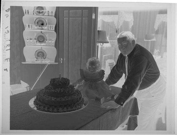 Editor: This is an untitled photograph by Martin Schweig, showing people at a buffet. The stark monochrome and stiff poses give it an eerie, almost clinical feel. What social dynamics might be at play here? Curator: It's fascinating to consider the power dynamics, isn't it? Notice how the composition seems to subtly differentiate the subjects. Who has access, who is serving, who is being served? What assumptions about gender, race, or class might be embedded in this seemingly simple act of taking food? Editor: I hadn't thought about it in terms of access. The man in the white suit seems almost separate from the others. Curator: Exactly! It prompts us to question the unacknowledged social scripts we often perform, and what those performances reveal about the structures of inequality in our world. Editor: That’s a powerful reading. It really makes you think about how everyday actions can reflect larger societal issues. Curator: Indeed. Art offers a lens through which to examine and hopefully challenge those issues.