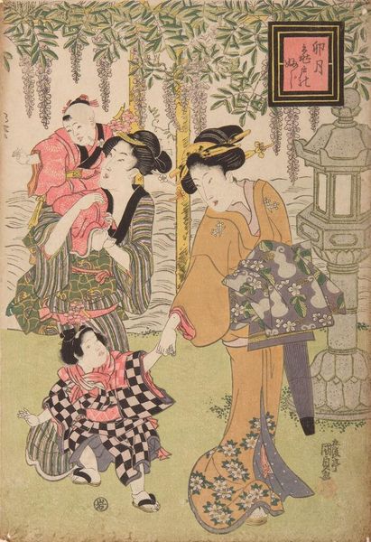Editor: This is Katsukawa Shunchō’s print, "Actors Segawa KikunojÅ 3rd and Sawamura SÅjÅ«rÅ 3rd," now housed at the Harvard Art Museums. It feels so staged, almost like a tableau. What symbols are at play here? Curator: Notice how the plum blossoms signify spring, a time of renewal. The actors themselves carry immense cultural weight; they're not just individuals, but embodiments of established archetypes and stories. Do you see how their garments function as visual cues, signaling their roles? Editor: It’s like they're wearing their narratives. I hadn't considered clothing as a kind of language. Curator: Precisely. Consider how Kabuki theatre preserved and transformed stories over generations, imbuing costumes and gestures with symbolic meaning that resonated deeply with audiences. This single image is a snapshot of a much larger cultural memory. Editor: That’s so interesting. I’ll definitely look at garments with a new perspective. Curator: Indeed, the layers of meaning embedded here speak volumes about cultural continuity and the enduring power of symbols.