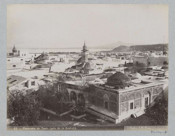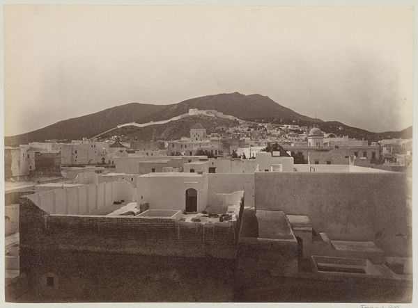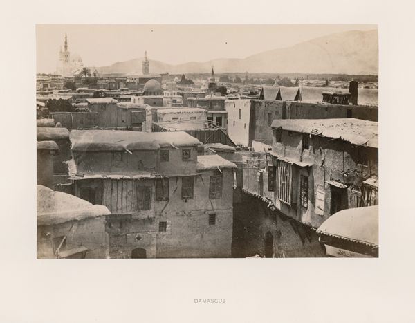 Editor: Francis Frith's "Damascus," taken in 1857, is a fascinating gelatin-silver print. The city sprawls under a rather imposing mountain. There's a documentary feel, but also, I find it quite romantic in its scale and sepia tones. What stands out to you when you look at this, Professor? Curator: What I see is the performance of empire, and the hunger for authenticity. Frith's choice to photograph Damascus wasn't accidental. It catered to a European audience hungry for images of the 'Orient'—a region then heavily romanticized and subjected to colonial ambitions. Editor: So, it's not just a pretty landscape? Curator: Absolutely not. Photography at this time was a relatively new medium, imbued with a sense of 'truth.' Frith and others capitalized on this belief, presenting a specific, often curated, view of the Middle East. Look at the angle; it emphasizes the vastness of the city, yet somehow feels devoid of human activity beyond the built structures. Doesn't that strike you as interesting? Editor: It does. It's almost… vacant. So, how does this play into the politics of the time? Curator: Well, these images were circulated widely in Europe, shaping public perception. By presenting a romanticized, often depopulated landscape, it reinforced the idea of European superiority and perhaps even a perceived need for intervention and "civilization". Essentially, the photograph becomes a tool for justifying colonial expansion. Editor: That's a pretty heavy concept. I never really considered the power that early photography held in shaping such broad opinions. Curator: Indeed. It's a stark reminder that art, even seemingly objective documentary photography, is always created within a specific social, political, and cultural context, and thus carries that baggage. It makes you think twice about seeing any art without questioning why and how it came to exist. Editor: Exactly. Thanks for shedding light on the cultural and historical layers of Frith’s “Damascus”. I definitely view this photograph through a different lens now.