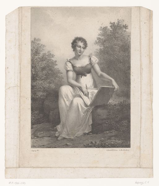 Curator: Welcome. Here we have a rather charming engraving from 1770, "Portret van mevrouw Lumsdon" by Thomas Watson, housed right here at the Rijksmuseum. Editor: The mood is so... contemplative. Almost sepia-toned even though it isn’t, if that makes sense? A gentle breeze ruffling the imaginary pages of her score… Makes you wonder what’s she reading? Is it Mozart? Maybe a torrid sonnet disguised as a minuet? Curator: Very likely music, yes! Given the time, it would have been created using meticulous techniques. Consider the mezzotint process employed to achieve the tonal gradations. The copperplate would've been roughened with a rocker, then smoothed in areas to control how much ink the plate held. It speaks to an era where printmaking democratized portraiture for a growing middle class. Editor: It feels like I am intruding on a private moment, in that space between daydream and rehearsal. She’s absolutely lost in that music, yet present. It makes you feel like you could practically hum along, you know? A little shyly, perhaps. I really like the contrast with the background that hints at some sort of garden – but only barely. Curator: Indeed. The background contributes to this effect of contained domesticity but also alludes to her refinement and connection to nature, both carefully coded within these conventions. The fabric itself, cascading folds and precise rendering, indicate significant material wealth. The whole composition operates as a carefully arranged sign system. Editor: I am captivated by the almost casual nature of her pose though! It is so studied yet feels accidental, which probably means nothing was accidental at all, right? So much intention in appearing effortless! You can practically hear the rustle of the silk and almost catch the faint fragrance from the garden on the breeze… Curator: Exactly, it demonstrates a real understanding of status, labour and materials by the artist and commissioners during this time. Everything has been precisely executed to portray that feeling, even if, to the contemporary eye, it might be overlooked in favour of aesthetic appreciation alone. Editor: I feel as though I now have an added appreciation for both Thomas Watson's technical ability, and a deeper appreciation of this composition – it seems the artist was able to balance not only the sitter’s refinement, but also convey her connection to culture. Curator: Indeed! Let’s move on to our next exhibit.