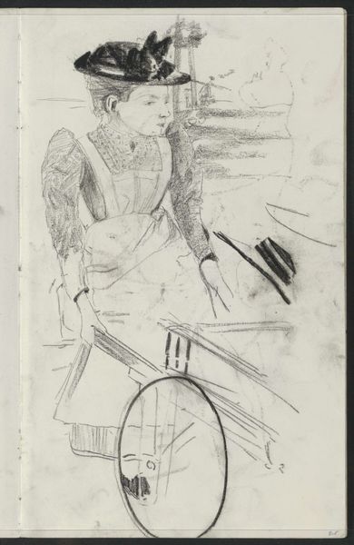 Curator: Camille Pissarro's "Peasant Girl Seated" is an intimate sketch, measuring about 32 by 25 centimeters, currently residing at the Harvard Art Museums. Editor: She appears lost in thought; the downward gaze certainly evokes a sense of melancholy or quiet contemplation. Curator: Indeed. Pissarro's choice of charcoal allows for a textured surface and speaks to the ready availability and low cost of the medium for sketches during this period. It suggests an accessibility in art production. Editor: The bowed head is a symbol of humility, a visual trope often associated with rural life and labor. It speaks volumes about the sitter's social position and perhaps the weight of her daily responsibilities. Curator: The quick, economical lines really convey a sense of immediacy, of capturing a fleeting moment. Editor: A beautiful, poignant snapshot, immortalized through simple means. Curator: It makes one consider the value inherent in representing everyday life.