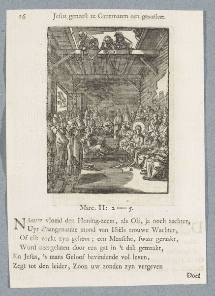 Editor: Here we have Bernard Picart's "The Gods of Egypt". It is an engraving dating back to the early 18th century. The composition seems quite dynamic, with figures interacting in a flurry of action. What strikes you most about its formal qualities? Curator: Observe the interplay of light and shadow, the meticulous rendering of each figure contributing to a scene of controlled chaos. Note, too, how the artist utilizes linear perspective to create depth, drawing the eye towards the background elements of pyramids and classical architecture, creating visual harmony. Editor: So, it's the formal arrangement that conveys meaning here, rather than any specific symbolism? Curator: Precisely. The arrangement of forms, the distribution of light, these elements constitute the artwork's primary language. Consider how the artist uses line to delineate form, thus conveying a sense of movement and tension. Editor: That's fascinating, I will certainly look at art in a different way now. Curator: Indeed, a close examination of form often reveals the essence of an artwork.