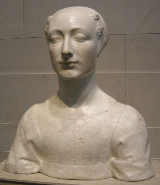 This is a marble bust of a young woman, created by Mino da Fiesole, an Italian sculptor working in the second half of the 15th century. During the Renaissance, portrait busts like this one became increasingly popular as markers of status and individuality. The woman's serene expression and elegant features reflect the humanist ideals of the time, which emphasized the importance of human beauty and intellect. Although this sculpture is currently named 'Young Woman', art historians believe that it is a portrait of a specific woman from Florentine high society. The style and medium align with the artistic values of Renaissance Italy. Florence was then a center of artistic production, supported by wealthy patrons such as the Medici family. This cultural context fostered an environment where artists like Mino could thrive, shaping the development of Western art for centuries to come. To fully understand the sculpture's significance, we need to consider how art was used to express identity and social status in Renaissance society. By examining historical records and other artworks from the period, we can gain a deeper understanding of its role in shaping cultural values.