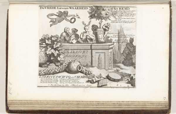 Abraham Allard etched this “Allegory on the Peace of Utrecht” in 1713, capturing the symbolic figures that defined the era's aspirations for harmony. At its heart, the image presents a tableau filled with symbols of peace and prosperity. Doves, ancient emblems of peace since the time of Noah, nest below. A nude female figure, a personification of Peace or Venus, sits serenely amidst plentiful flora. The image is literally crowned with a garland. These motifs can be traced back to classical antiquity, where similar imagery was employed to symbolize concord and well-being. Yet, consider how the perception of such symbols evolves. For instance, while doves remain largely unchanged, the allegorical female form, deeply rooted in the Venus pudica, constantly reappears throughout art history, transformed by the changing ideals of beauty and virtue. The arrangement creates a powerful engagement with viewers, tapping into a collective desire for tranquility and a subconscious recognition of deeply embedded cultural symbols.