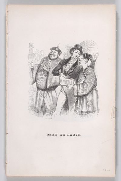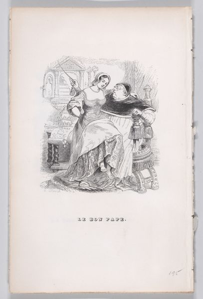 Editor: Here we have J.J. Grandville’s lithograph, “The Poor Woman,” created in 1836. The stark contrast between the finely dressed bourgeois and the kneeling, elderly woman is striking. How do you interpret this work, particularly within its historical context? Curator: It’s a powerful depiction of the socioeconomic disparities in 19th-century France, particularly relevant during the July Monarchy. Grandville critiques the emerging bourgeoisie, indifferent to the plight of the impoverished. Consider the positioning: the well-dressed figures, shielded by umbrellas, literally walk past the kneeling woman. How does that visual contrast highlight the systemic issues at play? Editor: It feels very deliberate – they’re almost turning away from her, creating a visual and emotional distance. The poor woman is right there, but they barely acknowledge her. Curator: Exactly. This resonates with the broader societal indifference to poverty, particularly impacting women. We must ask: What narratives are silenced when economic power dictates who is seen and heard? Grandville is using Romanticism, not to idealize the past, but to expose the inequalities of the present. Do you see how his choice of medium—the print—also democratizes the message, making it accessible to a wider audience? Editor: Yes, producing a print means it could be distributed more easily and widely. I guess I hadn't considered that aspect of its creation. Curator: Considering access and representation in art, especially in a piece focused on social disparity, helps to amplify Grandville's message. It forces us to consider the ongoing struggles against economic inequality, gender bias, and class division. Editor: This artwork really highlights how much context shapes not only our understanding but also the artwork's intention. Curator: Indeed. And recognizing those contexts allows us to actively engage with the artwork as a form of social commentary, then and now.