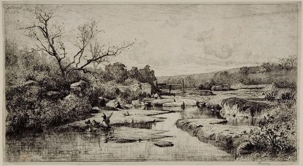 Carl Bloch created this black and white print, *Stone beach shore*, using etching, a printmaking technique that dates back to the Middle Ages. The artist would have covered a metal plate with a waxy, acid-resistant substance known as the 'ground', exposing the plate by drawing through it with a needle. The plate was then immersed in acid, which bit into the exposed lines, before being inked and printed. The resulting image carries a particular graphic quality, a consequence of the incisive process. The effect here is almost photographic, indicative of the increasing influence of photography at this time, which encouraged artists to explore more direct modes of visual transcription. However, Bloch has selected one of the oldest forms of image production to mimic the effects of the newest. This reminds us that every work of art is situated within a specific ecology of production. Looking closely at how things are made encourages us to expand our definition of art and value the rich histories of craft.