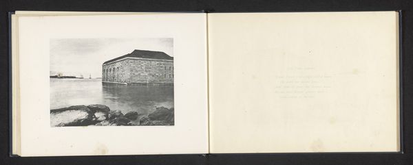 This monochrome photograph depicts a pavilion on the coast near South Portland, and was made by an anonymous artist. The grainy quality suggests it may have been produced using traditional photographic processes, which rely on light-sensitive materials to capture an image, rather than digital reproduction. This method imbues the image with a tactile quality, contrasting with the smooth surfaces of digital prints, giving it a sense of age and historical significance. The choice of subject, a modest pavilion nestled by the sea, perhaps speaks to a bygone era of leisure and contemplation. The structure's stone and timber construction reflect available local materials, each stone carefully selected and placed. This image stands in contrast to mass-produced architecture. The photograph captures not just a structure, but a way of life intimately connected to its environment. By considering materials, making, and context, we gain a deeper understanding of both its aesthetic qualities and its place within broader social and cultural narratives.