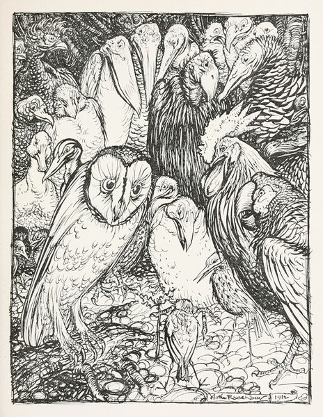 This black and white illustration was made by Ivan Bilibin in 1910 for Alexander Pushkin’s poem ‘Two Crows’. Look at how Bilibin uses line; it’s so precise! Each line feels deliberate, building up the texture of feathers and clouds. The contrast is stark, like a woodcut, but with a softness, you know? It’s in the way he shades the crows' wings, dense areas of tiny lines giving way to open spaces. I'm drawn to the crow on the right, its beak slightly open, as if it’s about to caw, or maybe it’s just commenting on the weather. The way the feathers are rendered reminds me of the graphic quality in the work of someone like Rockwell Kent. It’s a kind of illustrative style that embraces its own artifice, and yet it still manages to evoke a sense of mood, and mystery. It shows that art can be both representational and decorative. There’s an ongoing conversation, isn’t there, between what we see and how we choose to depict it.