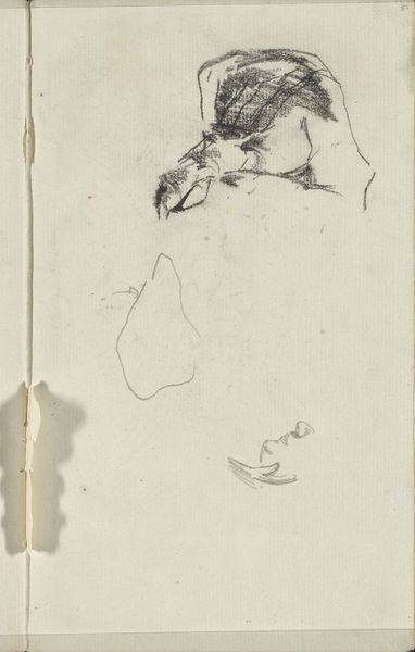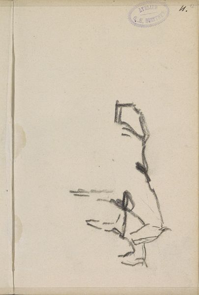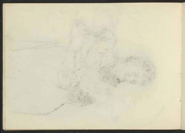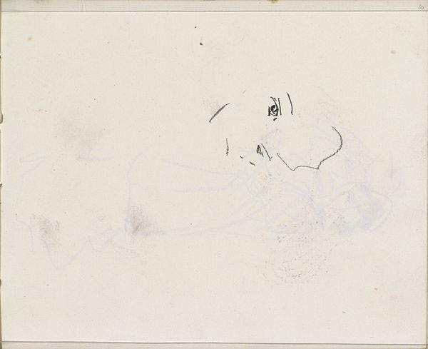 Curator: Here we have Francis Bacon's "Figure Lying, No. 1," currently held in the Tate Collections. The support measures 340 by 270 millimeters. Editor: It feels raw, almost violently so. The red figure practically bleeds into the white background, offset by those stark blue lines. Curator: Absolutely. Considering Bacon's lifelong exploration of existential themes, one might read the work as a commentary on the vulnerability of the human body, a visceral depiction of the human condition stripped bare. Editor: True, the composition is unsettling. The limited palette amplifies the emotional intensity, and the figure's indistinct form resists easy interpretation. It's about form, color, and the raw physicality of the paint itself. Curator: But the cultural context is equally important. The post-war era profoundly shaped Bacon's worldview, and his art unflinchingly confronts the anxieties of a world grappling with trauma and uncertainty. Editor: Perhaps. Yet, the immediacy of the brushstrokes, the tension between abstraction and representation—these elements are undeniably powerful, independent of any historical narrative. Curator: I find myself contemplating the enduring impact of societal pain on individual expression. Editor: And I'm struck by the sheer force of Bacon's visual language.