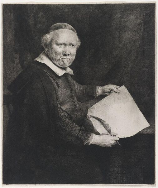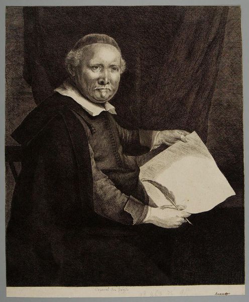 Cornelis Visscher created this engraving, "Portrait of Lievan van Coppenol," during the Dutch Golden Age, a period of unprecedented economic and cultural flourishing for the Netherlands. Visscher's work reflects the era’s complex relationship with identity and representation. Van Coppenol, a schoolmaster and calligrapher, is rendered with a striking realism that captures his humanity. But this realism doesn't flatten social nuance. Instead, the detailed rendering of his clothing and the quill in his hand subtly hints at his profession and status, revealing the intricate ways in which one's identity was constructed and communicated in 17th-century Dutch society. Consider how portraiture often served as a tool for the elite. Visscher uses it to immortalize a man of letters, challenging traditional hierarchies of power and prestige. What does it mean to see the humanity and dignity of someone who might have been otherwise overlooked by history? It's a quiet revolution, etched in ink.