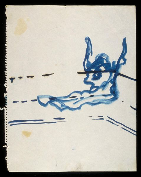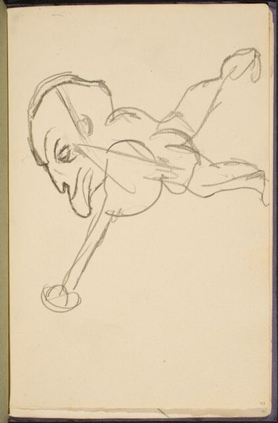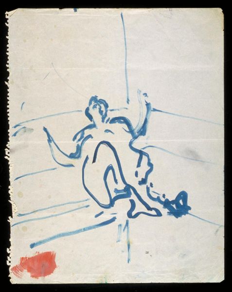 Curator: This is Francis Bacon's "Cross-legged Figure with Arms Raised, No. 1," a sketch currently held in the Tate Collections. What strikes you first? Editor: Its raw vulnerability. The figure's pose is almost pleading, yet the sketchiness gives a sense of detachment, a loss of control. Curator: Bacon consistently challenged representational norms. Think about the socio-political climate he was working within. How does the distortion speak to the experience of trauma and existential angst, particularly in the post-war era? Editor: Absolutely. We see the echoes of societal breakdown, a profound questioning of identity in a world redefined by violence and shifting power structures. The figure's anonymity, its lack of defining features, amplifies this feeling of universality. Curator: The absence of a defined date is interesting too. It allows us to consider it outside a specific historical moment, amplifying its timelessness. Editor: Indeed. It becomes a mirror reflecting our ongoing struggles. It is a potent image that continues to haunt.