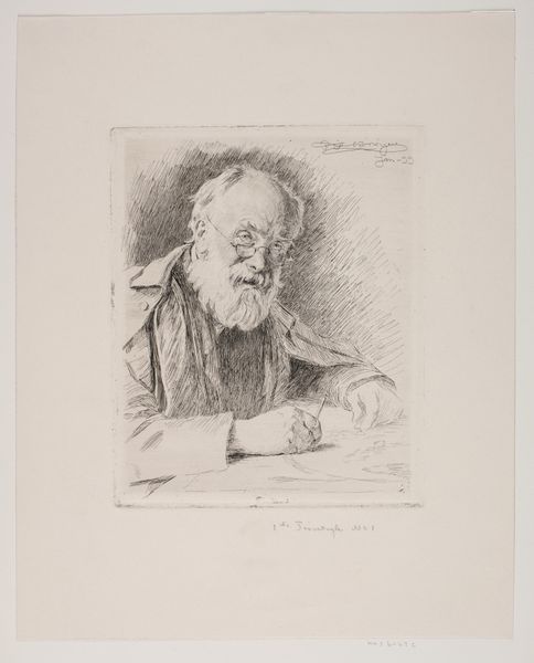 Jan Veth created this portrait of Adolph Menzel, capturing him engrossed in his art. Menzel is depicted holding a pencil and a drawing tool, poised over a large sheet of paper, ready to capture his vision. These instruments are not mere tools; they are extensions of the artist's intellect and spirit. The pencil itself—a seemingly simple object—becomes a wand, capable of conjuring entire worlds onto the page. Think of the pens wielded by scribes in medieval manuscripts, charged with the power to preserve knowledge and illuminate sacred texts. The gesture of the hand holding the pencil is echoed through time, reappearing in countless depictions of artists, writers, and thinkers. This is a visual echo that speaks to our collective memory of creativity. The act of drawing as portrayed here connects Menzel to a lineage of creators stretching back through time, each contributing to the ever-evolving story of human expression. It evokes a sense of profound concentration and purpose, inviting us to reflect on the creative spirit that drives artists to capture, interpret, and transform the world around them. This portrait, then, is not just a likeness but a timeless symbol.