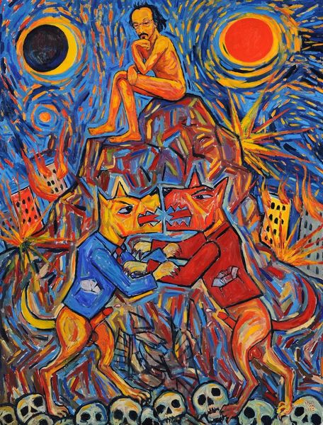 Gaston Chaissac painted "Personnage sur fond nocturne étoilé," or "Figure on a Starry Night Background," during a period marked by the aftermath of World War II and the rise of existentialism. Chaissac, who was initially self-taught, developed his unique style while living in rural France, isolated from mainstream artistic circles. His work often incorporated themes of identity, alienation, and the human condition, which are clearly visible here. The figure, set against a night sky, appears both childlike and world-weary. Its face is asymmetrical, and the eyes are mismatched, evoking a sense of unease. The vibrant, almost haphazard use of color, contrasts sharply with the somber mood, creating a tension that invites introspection. Chaissac once said, “I paint as others write their memoirs.” In this deeply personal piece, Chaissac reflects the complexities of human experience, challenging conventional representation and expressing an emotional vulnerability.