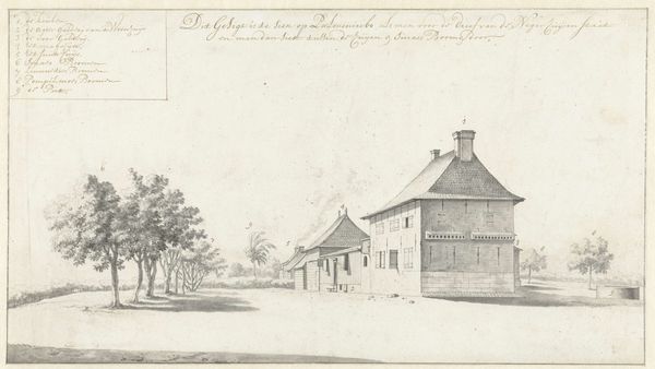 Editor: This etching, "t' Rechthuys tot Ouderkerck" by Geertruydt Roghman, offers a glimpse into 17th-century Holland. It's so detailed, but almost feels dreamlike. What atmosphere do you find here? Curator: It feels like a captured breath, doesn't it? Roghman gives us not just a building, but a sense of place, a feeling of the Dutch light. The etching's starkness evokes a quiet contemplation, a stillness amidst what would have been a bustling community. Editor: Stillness is perfect – like a memory fading gently at the edges. Curator: Exactly. And isn’t it amazing how much narrative she packs into such a small space? From the figures, you almost hear whispers carried on the wind. The building itself seems to have stories etched into its very stones. What stories do you think it holds? Editor: Tales of everyday life, probably. Courtrooms, arguments, settlements. This etching has inspired a far more interesting narrative than I expected.