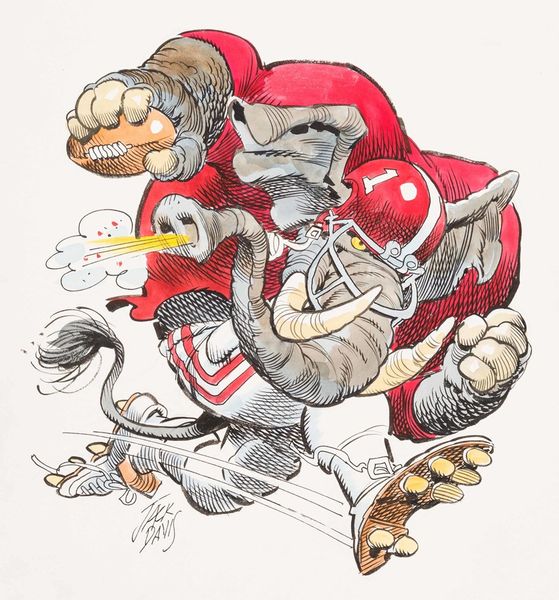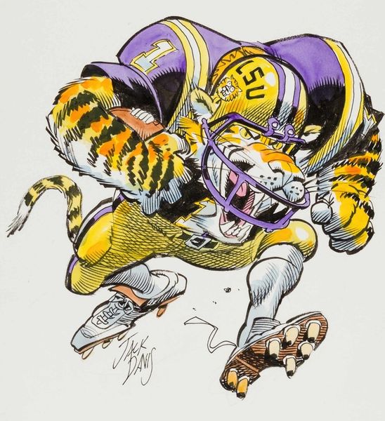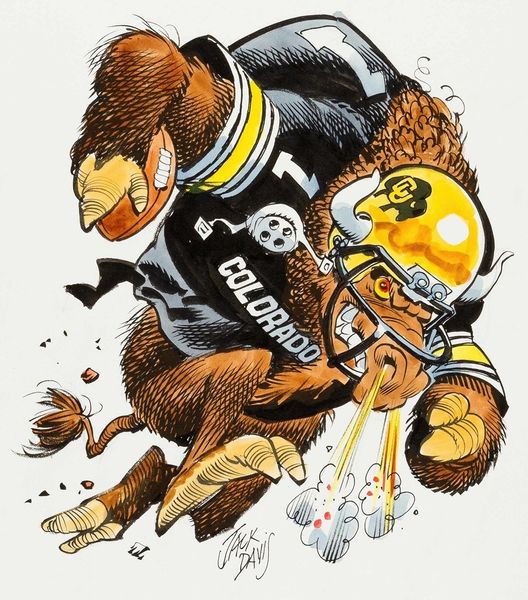 This is an illustration by Jack Davis, capturing a San Francisco 49ers football player in a moment of peculiar triumph. He is portrayed mid-action, clutching both a hotdog and a bowl of some mysterious food. Here, we see more than just a football player; we witness the embodiment of victory and its spoils. His gaping mouth reminds us of the ancient Roman triumphs, where the conquering hero was paraded, a spectacle of power, while the crowd roared in approval. Now, consider how the motif of the 'triumph' has been echoed through history: from the Renaissance depictions of victorious emperors to the modern-day celebrations of athletic champions. This image engages us on a deep, subconscious level; it calls forth collective memories of celebration and success, yet filtered through Davis's humorous lens. It's not merely about a football game; it is a symbol of aspiration, transformed into a symbol of modern-day feasting.