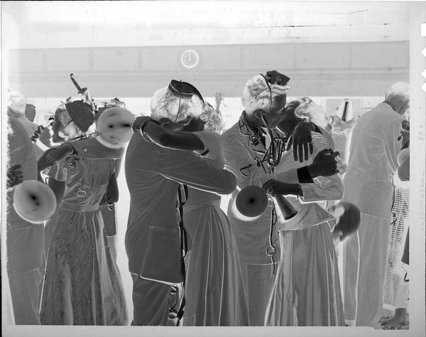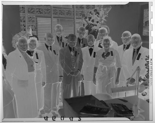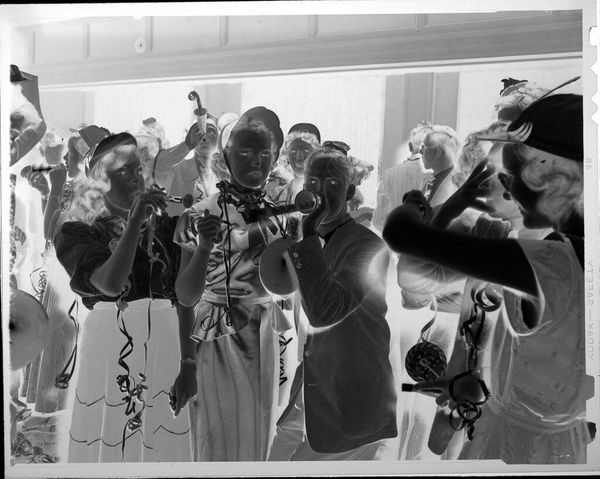 Robert Burian captured this Untitled photograph of a New Year's Eve celebration at an unknown date. This image invites us to consider the social rituals surrounding holidays and gatherings, particularly in the context of early to mid 20th-century America. The photograph, with its revelers adorned in party hats and streamers, presents a snapshot of a specific social class. Consider how these visual cues reflect the economic conditions and social norms of the time. The choice of attire, the setting, and the very act of documenting the event through photography speak volumes about the values and aspirations of this group. To fully understand this work, it’s helpful to consider cultural references and historical associations. We can use sources such as period magazines, social club records, and personal letters to reconstruct the world inhabited by Burian’s subjects, gaining deeper insights into the photograph’s meanings and messages.