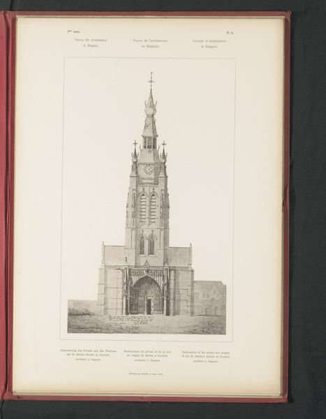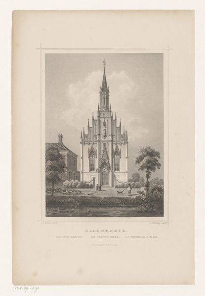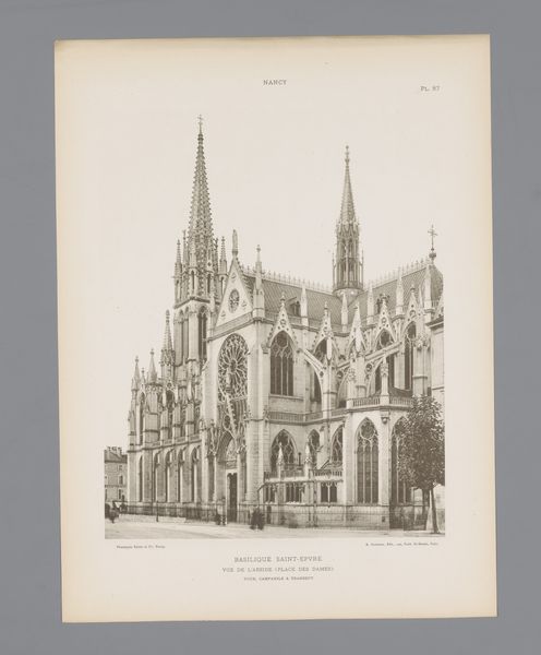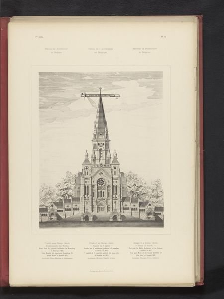 This is a reproduction by Römmler & Jonas of a design of the Sint-Bavokerk in Lauwe, likely made with photolithography, a process involving photography and printing. The image, mass-produced using industrial techniques, shows the architect L. Degeyne’s design. Here, the making of the print involves technical expertise, a departure from traditional artistic media like painting or drawing. The precision achieved through photolithography captures every detail of the church’s architecture, highlighting its structure and form. Consider the social context: mass reproduction democratizes art, making architectural designs accessible beyond the elite. The material and process challenge traditional notions of art, blurring the lines between craft, industry, and artistic expression. The print invites us to think about the labor and technology involved in disseminating architectural ideas, thus moving beyond conventional boundaries of art history.