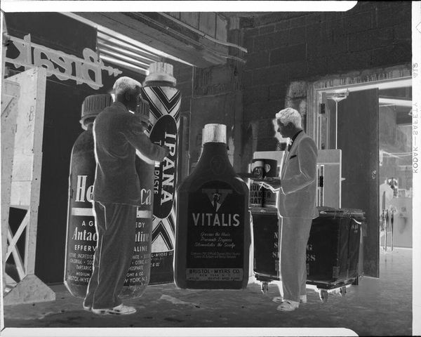 Curator: This image, Iain Baxter&’s "Liquid Detergent, Vancouver, British Columbia" from 1965, it’s stark, isn’t it? Look at the shelves packed with cleaning products. The brand names practically scream from the photograph. What are your initial thoughts? Editor: It feels very…clinical, almost like a study. The monochrome emphasizes the uniformity, but the rows of varied bottles and prices are almost overwhelming, giving an impression of abundant choices. What do you see in this piece? Curator: Abundance, certainly. But I also see a kind of shrine. These household products, photographed with such directness, become symbols of domestic life, of a society preoccupied with cleanliness and order. Notice how Baxter& flattens the perspective, almost as if we're viewing a devotional iconostasis. Editor: So, you see this almost as a sacred representation? But of what, exactly? Consumerism? Curator: Partially, yes. But also of a specific kind of idealized home, of a role women were expected to fulfill in the 60s. These bottles, with their carefully designed labels and promises of pristine cleanliness, reflect aspirations and anxieties of the era. Don't you find some visual puns or associations in the naming of the brands? Editor: Oh, Joy… Trend, yes of course, those must have some emotional context beyond cleaning power. It's thought provoking to consider everyday products like these holding so much meaning. I'd never looked at a supermarket shelf like this before. Curator: Precisely! Everyday life is dense with significance; all one has to do is decode the signs. It makes you wonder what future historians might make of our present supermarket shelves, doesn't it? Editor: Absolutely! It reframes the way I’ll see these ordinary items moving forward.