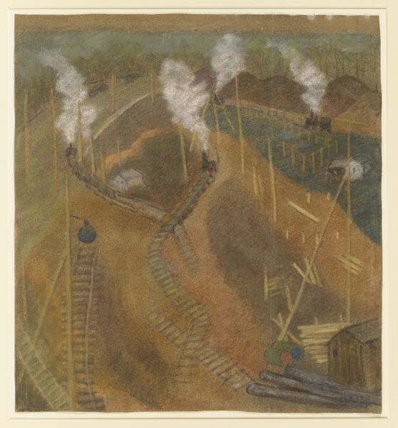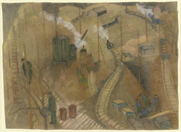 Pauline Kowarzik made this muted pastel drawing of the I. G. Farben building site in 1928. There's something so tender and unassuming about the touch. It's as if she's feeling her way through the scene, marking out trains and plumes of smoke with an almost hesitant hand. The colours are earthy – browns, ochres, and muted greens – which give the whole composition a subdued, melancholic feel. The drawing has a soft, almost blurry quality, as if the scene is emerging from a haze. I love the way the soft marks build to create a sense of depth and movement. This piece reminds me a little of Lovis Corinth's landscapes. There is a similar looseness, a willingness to let the medium do its thing. Both artists share an interest in the physicality of the world around them. This image embraces ambiguity, and maybe that's why it stays with you.