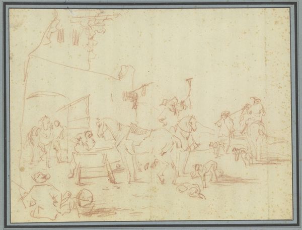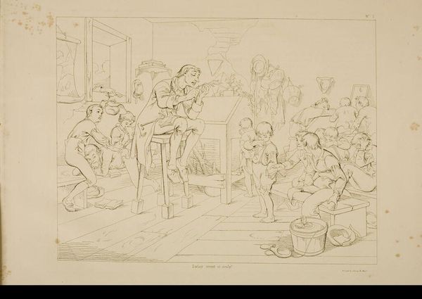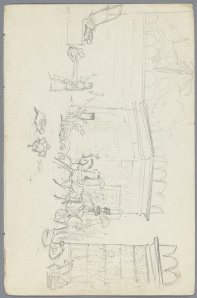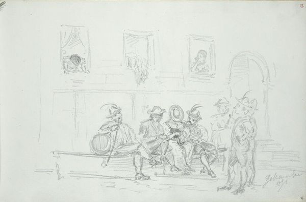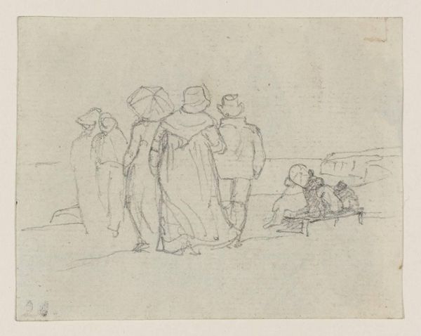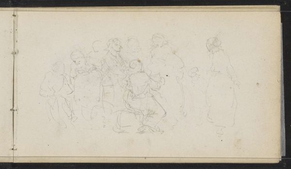 Hendrik Abraham Klinkhamer made this sketch of a peasant family in an interior, likely in the mid-19th century, using graphite on paper. The directness of the drawing allows us to focus on the scene depicted. Klinkhamer's choice of graphite lends itself to a quick study, prioritizing the immediacy of capturing the family's dynamic. There is a striking contrast between the apparent simplicity of the medium and the complexity of the social narrative being portrayed. The setting appears humble, highlighting the family's connection to the land and their reliance on manual labor. This sketch invites us to consider the relationship between art and everyday life, blurring the lines between high art and depictions of the working class. Klinkhamer emphasizes the value of ordinary subjects, challenging conventional distinctions and elevating the dignity of labor through his artistic representation.