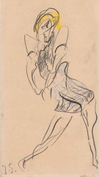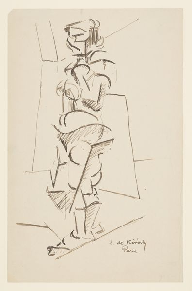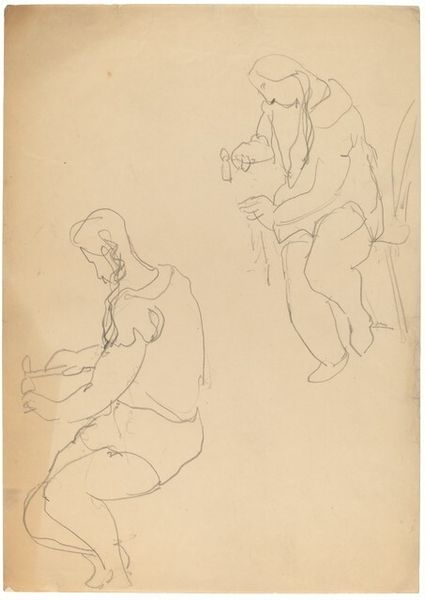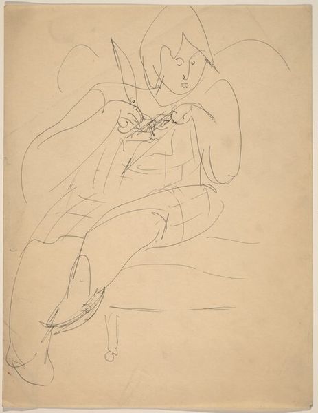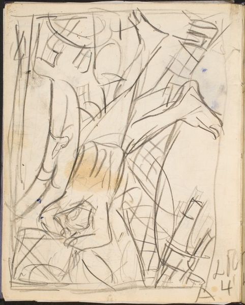 Curator: Today, we’re examining "Three Nudes (or Nude in Motion) with Trees to the Left," a pen sketch attributed to Mark Rothko. Editor: There’s an energy here, isn't there? A frantic yet elegant kind of line-work creates what feels like a scene caught in-between movements. Curator: Absolutely. It’s executed in pen and ink, quite stark when you consider Rothko's trajectory toward color field paintings. Here we see raw materiality; paper, ink, and the artist's immediate gesture all come to the fore. What paper stock did he favor at this time? Was this drawing from a ream readily at hand, or something carefully selected? Editor: Looking beyond the mere material qualities of the pen sketch, it also calls to mind the classical themes of bathers or nymphs in a landscape setting. The figures are interwoven, almost like a single, multifaceted body. Curator: Interesting observation. It challenges the supposed hierarchy between sketch and finished piece, no? It questions labor of production as a commodity to be sold, but an honest pursuit of artmaking and exploration through process. Editor: Perhaps it even prefigures Rothko's later abstractions, with its fragmented and dissolving forms hinting at a deeper psychological space, especially as it calls to mind the archetype of the eternal feminine spirit of life. Curator: And it leads to other questions: Where did he choose to do this, in an outdoor space where he observed a live model in relation to nature? What time of the day was it, was there some sort of rush that can be observed in his marks? The physical act of making becomes crucial to understand this artwork. Editor: A glimpse, then, into a complex internal world. It reveals the artist as a sensitive register of powerful symbolic languages which extend from classical themes through to Rothko's mature expressionism. Curator: Well, considering how radically different it seems compared to Rothko's best known work, it certainly compels us to reconsider simplistic narratives about artistic progress. Editor: Yes, it enriches our view. There are connections, deeper motifs in the human psyche linking what might seem disparate across a lifetime.