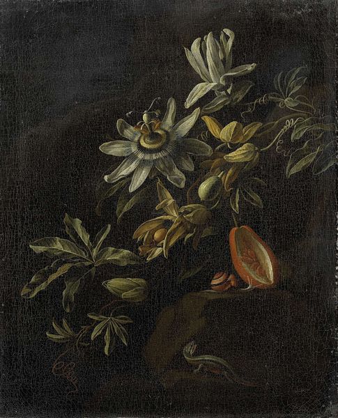 Isac Vromans created “Grapes, Flowers, and Animals” with oil on canvas. Dutch Golden Age painting often spoke to the nation’s economic success, and Vromans' composition is no exception. It evokes a sense of abundance, not just of natural goods but of global trade. Grapes were being cultivated at home, but other fruits may well have been imported. Still life painting academies taught artists how to arrange objects to produce a pleasing effect, or even to imbue them with symbolic meaning, the butterfly being one of transformation and the grapes a sign of wealth. Vroman’s subdued palette and dark background, however, place the still life in a more naturalistic setting than was typical, with a bird and fish included in the composition. Examining merchants' inventories and guild records helps us understand how artists made a living in this period, as well as the public role played by this kind of seemingly straightforward imagery.