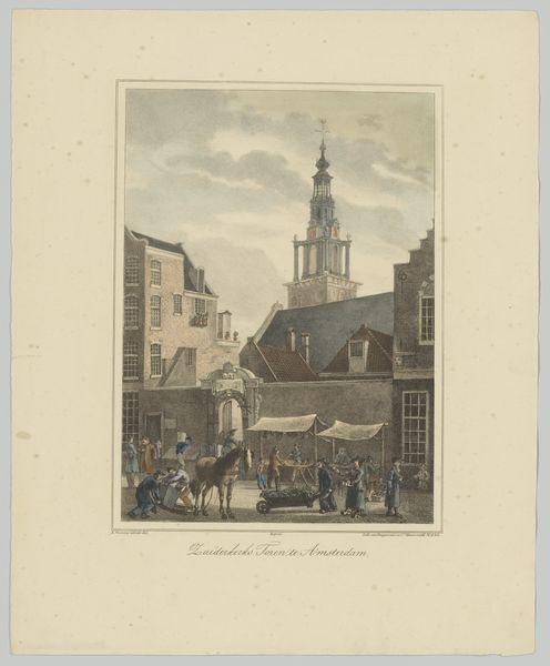 Georg Balthasar Probst made this view of the Nieuwe Kerk in Delft as a hand-colored etching. Etching is an indirect intaglio process. A metal plate, often copper, is coated with a waxy, acid-resistant ground. The artist then scratches an image into the ground with a pointed tool, exposing the metal. The plate is immersed in acid, which bites into the exposed lines, creating grooves. The plate is then inked, and the surface wiped clean, leaving ink only in the etched grooves. Damp paper is laid on the plate, and both are run through a press under high pressure, transferring the ink to the paper. Finally, the print is hand-colored. Each of these stages demands skillful labor. The acid-biting process alone requires immense care. This print gives us a fascinating glimpse into 18th century Delft, but it's equally compelling as a demonstration of human ingenuity, skill, and effort. Considering these aspects brings us to a fuller understanding and appreciation of its value.