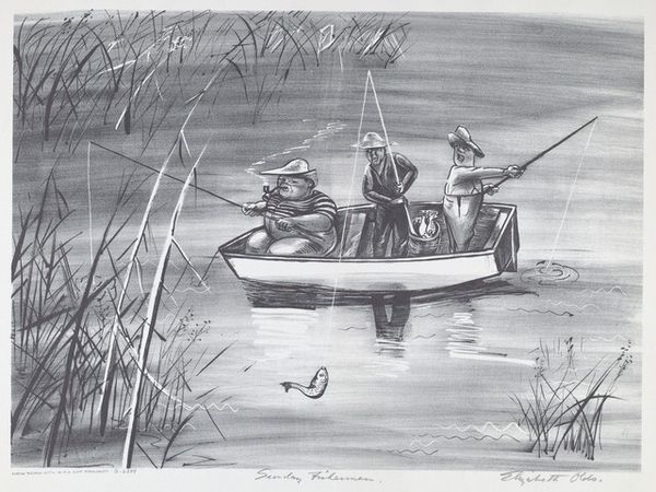 Editor: Here we have Boris Kustodiev’s illustration for Nikolay Nekrasov's poem "Grandfather Mazay and the Hares," created in 1908, using ink, woodcut, and printmaking techniques. It's a stark black and white image, and I’m immediately struck by how the artist uses all these intricate lines to create texture and depth, it almost feels claustrophobic. What do you see in this piece, beyond the technical skill? Curator: This piece, beyond its illustrative purpose, speaks to the precarious relationship between humans and the natural world. Kustodiev offers us a glimpse into the narrative, and into a world where Grandfather Mazay actively intervenes to save these creatures. It highlights an engagement with the sociopolitical debates surrounding animal welfare. Editor: That’s a good point. I hadn’t really thought about it in terms of animal rights. Curator: Think about the period, too. The late 19th and early 20th centuries saw growing concern around industrialization and its impact on the environment, so we can interpret this scene of salvation as a comment on wider ecological issues and, perhaps, a reflection on the disruptive effects of industrial development on animal habitats, and a call for empathy. What do you think about how he used this highly contrasting and detailed aesthetic to express such ideas? Editor: Now that you mention it, the limited color palette combined with the high level of detail enhances the tension, it amplifies that sense of fragility that the hares in the boat must feel. And maybe Kustodiev used a Realist style to make his message seem even more applicable to everyday life at the time. Curator: Exactly. The artistic choice echoes the broader artistic and intellectual movements which is tied to socialist ideology, of a populist movement seeking to connect art with the realities and experiences of common people. I like your interpretation, too, of fragility and how this image renders an accessible view into a debate with social implications. Editor: It’s amazing how much historical and social context can change the way you view a work of art. Thanks for showing me that today!