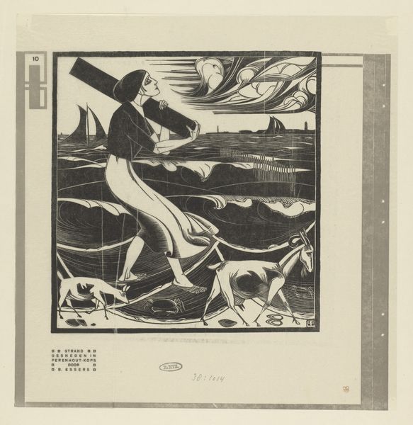 This print, "The Fisherman," by Henri van der Stok, depicts a man submerged in a tumultuous sea. The swirling waves and dark skies evoke a primal confrontation between humanity and the overwhelming forces of nature. Consider the recurring motif of the "sea storm" in art history. From ancient flood myths to Renaissance shipwrecks, the image of violent waters has symbolized chaos, purification, and the struggle for survival. Think of Hokusai's "Great Wave," where a similar wave threatens to engulf humanity, reflecting a collective anxiety about our place in the world. The fisherman's vulnerable state taps into our subconscious fears of the unknown, and the life cycle. Yet, there's also a sense of resilience, a Promethean spirit of defiance against the elements. This motif has resurfaced throughout history, evolving from religious allegories to secular narratives. It continues to resonate, reminding us of the eternal dance between order and chaos, vulnerability and strength.