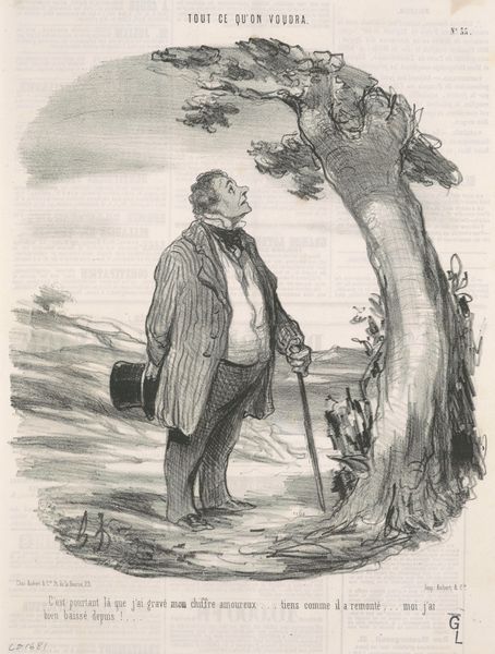 Honore Daumier made this lithograph titled "Actionnaires Californiens," or Californian Shareholders, in 19th-century France. Daumier was a master of social satire, using his art to critique the bourgeoisie and their obsession with financial speculation. Here, we see two men engaged in what seems to be an intense discussion. The setting is a park, perhaps near a wealthy neighborhood. They are caricatures of wealth and status, with their exaggerated features and clothing, Daumier subtly mocks their self-importance. The title refers to investment in Californian businesses, hinting at the speculative fever surrounding the Gold Rush era. Daumier's work appeared in newspapers like "Le Charivari," reaching a wide audience and influencing public opinion. His art serves as a historical record, reflecting the social and economic conditions of his time. To fully understand Daumier's art, one must consider the historical context, including the rise of capitalism, the role of the press, and the prevailing attitudes toward wealth and power.