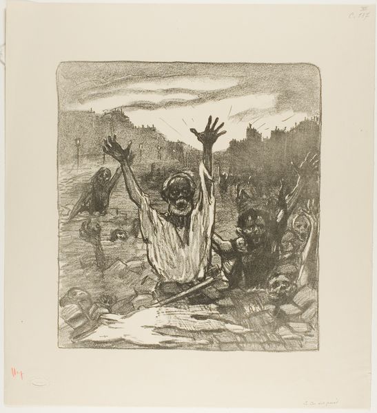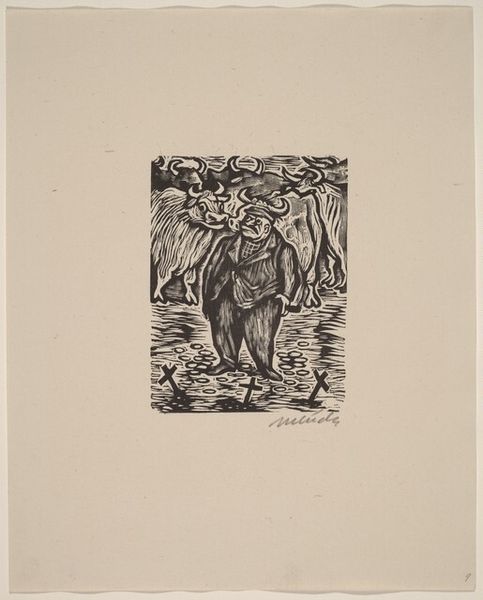 Editor: So, here we have Leopoldo Méndez's "Fascism II" from 1943. It's a stark print and feels overwhelmingly bleak. What catches my eye is how the textures created by the printmaking process almost amplify the violence of the scene. What do you see in this work? Curator: I notice first the blatant representation of power dynamics embedded within the image's production and context. Consider the tools used to create this print – the gouges, the deliberate carving away of material. These are physical acts, mimicking, in a way, the violent suppression depicted. What is being consumed to disseminate such images of resistance? Paper? Ink? Resources that could be put to other uses. Editor: That's fascinating. So you're suggesting that even the medium itself is implicated in a larger political and economic system? Curator: Precisely! Méndez isn't just showing us fascism, he is implicating us within the systems required to challenge and depict it. The labor required to produce such work and who it benefits most... that's a question we should continue asking ourselves, don't you agree? The woodblock holds, it repeats… Who owned that press, that wood? How did the materials shape the work? Editor: Absolutely, considering the means of production really opens up another layer of interpretation. Curator: What new appreciation do you have after considering it? Editor: I now appreciate how the image isn't just about what it depicts, but about the larger networks of labor, materials, and power it exists within. Curator: A critical lens helps to recognize these things, to deconstruct dominant ideologies, and expose underlying economic structures.