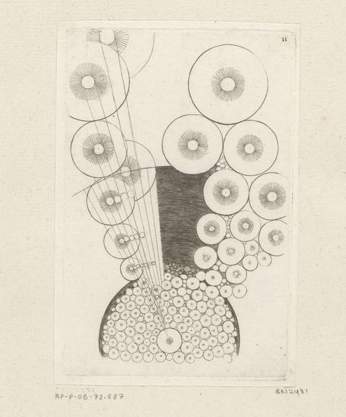 Editor: This is Heinrich Hoerle's "Prothesenkopf," created around 1925. It's a print, quite graphic and striking, that feels both futuristic and somehow ancient at the same time. It looks like a very early attempt to represent a cyborg. What springs to mind when you look at it? Curator: A kind of poignant disconnect. I mean, look at the date. 1925. The devastation of the First World War was still a very fresh wound. "Prothesenkopf," or "Prosthetic Head"—it’s almost too on the nose, isn't it? There's a visual starkness here, and I wonder if Hoerle wasn’t channeling the anxieties around the body, technology, and trauma that were so pervasive in Weimar Germany. Doesn’t it almost feel like a haunted machine? Editor: I see what you mean. Haunted is a good word! So, is the geometric style then more than just an aesthetic choice? Curator: Oh, absolutely. It's easy to get lost in the clean lines, but think about what Cubism did – it fractured perspectives, played with deconstruction. Maybe Hoerle is suggesting a fragmented self, rebuilt, but never quite whole? The graphic nature feels dehumanizing but that bold choice has great effect! What do you think? Editor: I hadn't considered the war connection so explicitly, but it adds another layer of depth. Initially I just saw it as cool! Curator: "Cool" isn't wrong! Art should provoke a response. But that's the joy, isn't it? Diving deeper. Editor: Definitely gives me a lot more to think about, beyond the pure aesthetic. Thanks!