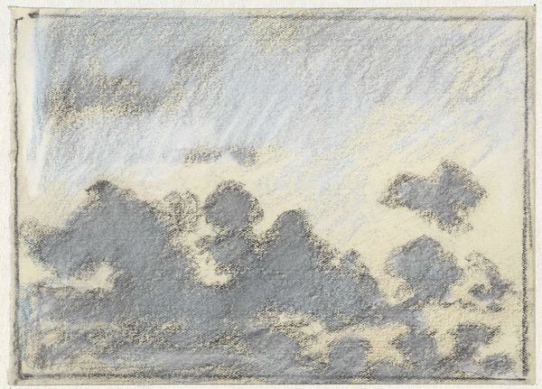This pastel drawing of clouds over the sea was made by Eugène Boudin. The cloud, a motif that has captivated artists and thinkers across millennia, appears here in its archetypal form. Consider the Renaissance depictions of Jupiter, often seated amidst billowing clouds, symbols of divine power and omnipresence. These cloudy thrones are not unique to Western art; similar imagery appears in Eastern traditions, representing deities and enlightened beings. Through the ages, the cloud motif has transitioned from divine representation to symbolic representation of transient and ethereal beauty. Boudin's clouds evoke a sense of awe and contemplation; they are a reminder of the sublime, of the overwhelming power of nature and the human psyche's endless fascination with the ephemeral. This image, though simple in composition, triggers something primal within us, a memory of shared human experiences across time. The cloud, ever-changing and endlessly fascinating, continues to inspire and reflect our deepest emotions.