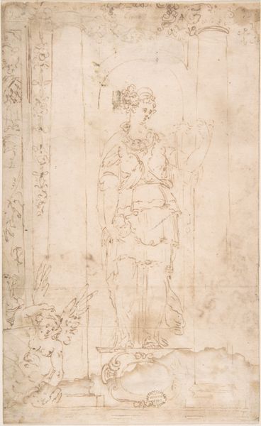 Orazio Samacchini rendered this drawing of a seated king in armor, possibly King David, sometime in the 16th century. The Renaissance fascination with classical antiquity often saw artists turning to the Old Testament for inspiration and subject matter. Given the cultural and religious context of the time, in which the Catholic Church held significant power, Samacchini’s choice to depict a biblical figure like King David carries layers of meaning. David is shown not just as a king, but as a figure touched by the divine, which is reinforced by the presence of angels above him. In Renaissance art, the armor that David wears often symbolizes the virtues of a just ruler. The artist uses traditional artistic techniques, yet he reimagines David, not merely as a historical or religious icon, but as a symbol of divinely sanctioned leadership. The drawing prompts us to reflect on the relationship between power, religion, and the ideal of virtuous leadership that continues to shape societal values. It invites viewers to contemplate the personal qualities necessary for effective leadership.
