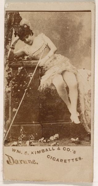 This small promotional card featuring actress Billie Barlow was produced around 1900 by W. Duke, Sons & Co. to advertise Cameo Cigarettes. Printed on paper, this card is one of a series portraying actors and actresses, designed to be collected. While seemingly simple, the mass production of these cards reflects significant shifts in industrial processes and consumer culture. The rise of lithography allowed for the cheap, rapid creation of colorful images, while innovations in printing technology made mass distribution possible. This little card served as a token in a larger transaction, incentivizing consumption, and fostering a culture of collecting and trading. The image itself, depicting Billie Barlow in costume, speaks to the burgeoning entertainment industry. Yet, the card's primary purpose was promotional, blurring the lines between art, advertising, and commodity. It embodies the dynamics of labor, politics, and consumption that shaped the turn of the 20th century. Appreciating the convergence of materials, methods, and context is essential to understand the full impact of this small, everyday object.