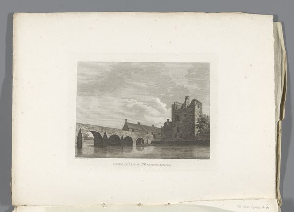 Editor: This etching, "Gezicht op de Pont des Arches in Luik," by Paulus Lauters, dating from 1839 to 1841, captures a city scene with an imposing bridge. I find myself drawn to the tranquility, almost as if time is standing still. What catches your eye when you look at this print? Curator: The bridge itself serves as a potent symbol. Bridges, across cultures, often represent connection and transition – linking disparate shores, lives, and eras. Here, it is "des Arches," drawing on a long-held European ideal of the arc form itself as triumphant and sturdy. What continuities can we find today from this era? Editor: Interesting. I suppose bridges still hold the same practical and symbolic weight as before. But does the fact that this is an etching—a print—change how we view that symbolism? Curator: Absolutely. Printmaking allows for wider dissemination of images, essentially democratizing access. Consider how the printing press changed literacy itself! This bridge, reproduced and shared, becomes a shared experience, a symbol amplified across the landscape, wouldn’t you say? Think about how specific the artist has been, from the clothing, architecture, to the quality of light. Editor: I hadn't thought of it that way—as a democratized symbol, more accessible. That makes me reconsider the intent behind its creation and distribution. I was so focused on the bridge itself that I didn’t really consider it as reproducible imagery. Curator: It invites questions about the artist's vision and how it became a public vision through reproduction. Consider how cultural memory is woven through the circulation of such images! What does the scene suggest to you now? Editor: Now I’m seeing how a seemingly simple landscape reveals layers of social, cultural, and symbolic meaning! The power of reproducible images is a lesson I'll definitely take forward. Thanks!