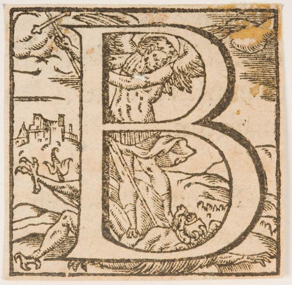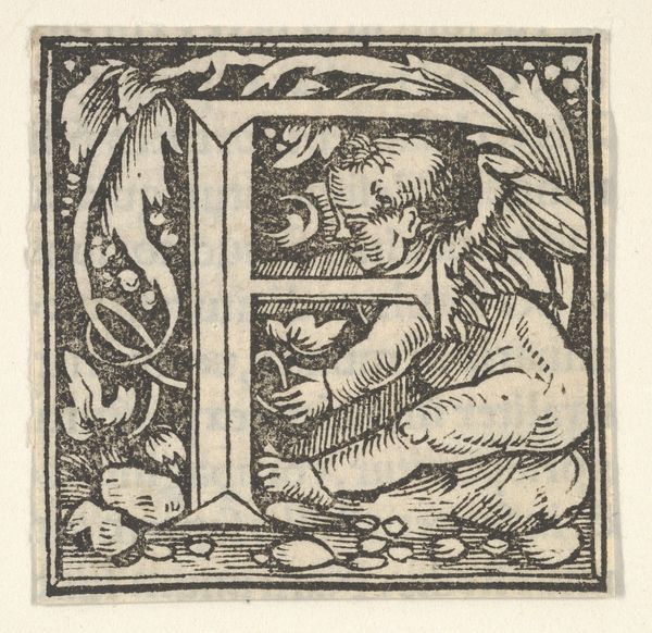 Curator: Our next piece is titled "Initial N," by an anonymous artist. Editor: It’s a bit chaotic, isn't it? All those putti crammed around the letter. Curator: Indeed. The composition directs the eye through a series of intertwined figures and foliage, all contained within the rigid structure of the letterform. Editor: I’m wondering about the block itself. The labor involved in carving something like this, with such intricate detail, must have been significant. Who was producing these, and for what purpose? Curator: One could consider it a meditation on the nature of beginnings, how something as structured as language arises from a state of artistic… potential. Editor: Yes, the raw materials and the hands that shaped them – a story of production. Curator: It's interesting to consider how the letterform itself becomes a vessel for visual narrative. Editor: I’ll certainly be thinking about the hands that crafted this. Curator: And I, the symbolic order contained within its lines.